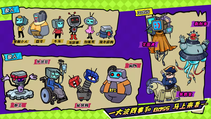 两面三刀的背刺小人?只会拍马屁的领导舔狗?出事只会甩锅的白莲花?希望全世界都伺候自己的巨婴?每天装作干到凌晨才回家的卷王?游戏内你将要面对几十种在职场中讨人厌的同事类型,他们数之不尽,能力各异,用你掌握的所有能力来横扫这些敌人吧!!