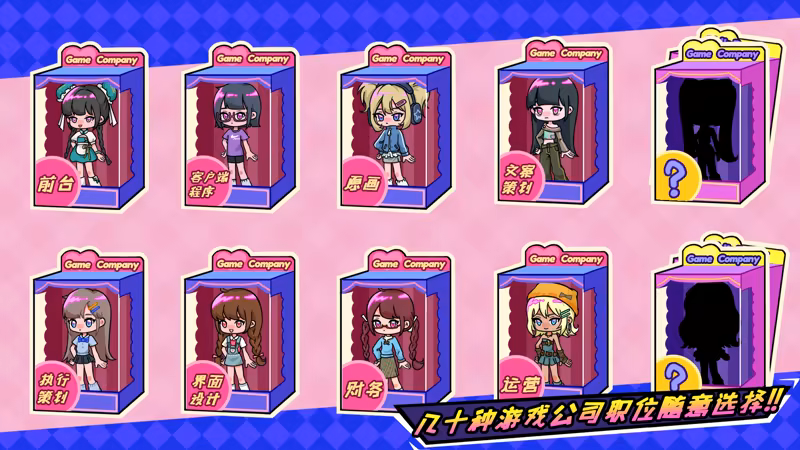 狗策划拿命来!但在游戏公司中,职位可不仅仅是以策划、程序和美术来区分的,在游戏中,你将可以使用四十种(或更多)不同职位的角色,她们拥有完全不同的被动特质和初始技能,每个角色的游玩体验都完全不同!虽然只能从初始的岗位干起,但随游戏进程就能逐渐解锁更多可用的职位,游戏公司中神秘的职位即将揭晓?各种五花八门的职位等待你的发掘,想要扮演中层和管理岗也不是不行,甚至连行政岗都不在话下,那是不是扫地阿姨也……